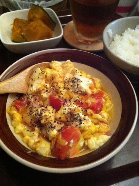 にんにくは弱火でじっくり炒めること、豆腐とトマトを入れたら炒め過ぎないのがポイントですね。