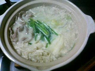豚肉、白菜、長ねぎ、エノキ、ほうれん草、ダシ汁、味噌、豆乳